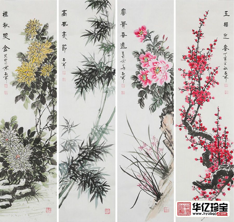 石开传统国画四君子《梅兰竹菊》