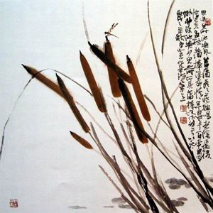 李荣海花鸟画《蜻蜓》68x68cm 李荣海花鸟画《寿者食之》68x68cm