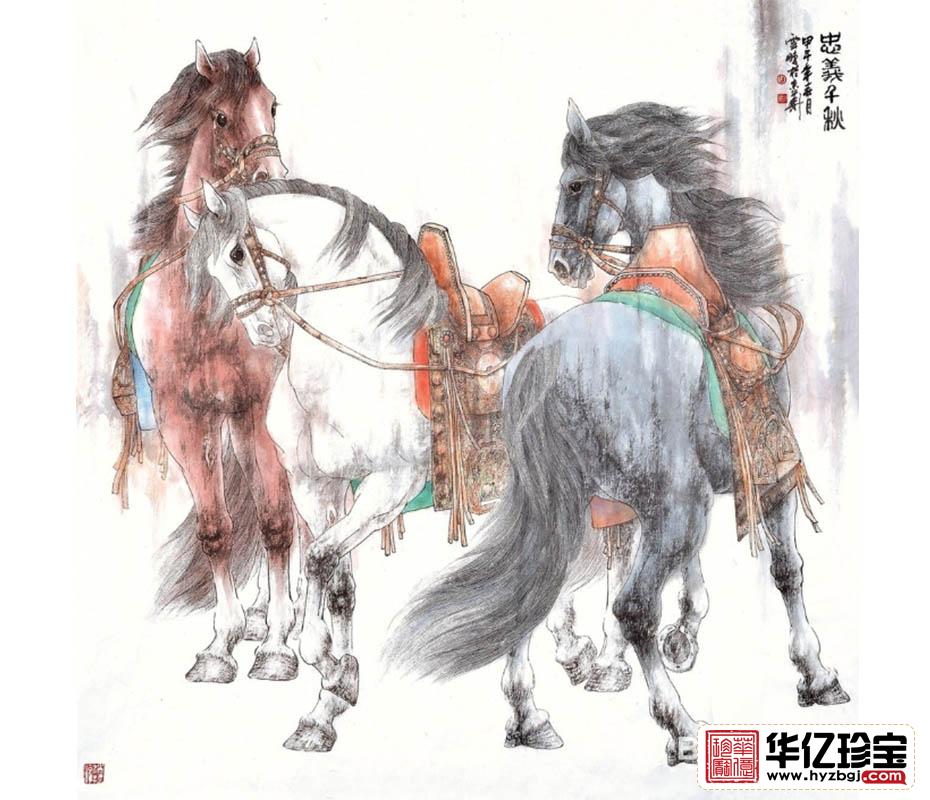 推荐名人字画收藏:陈云鹏八尺斗方动物画马作品《忠义千秋》