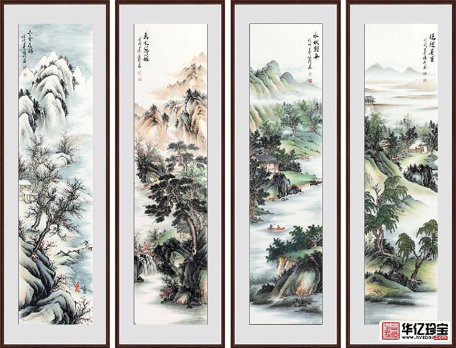 张利新品创作仿古山水四条屏《春夏秋冬》