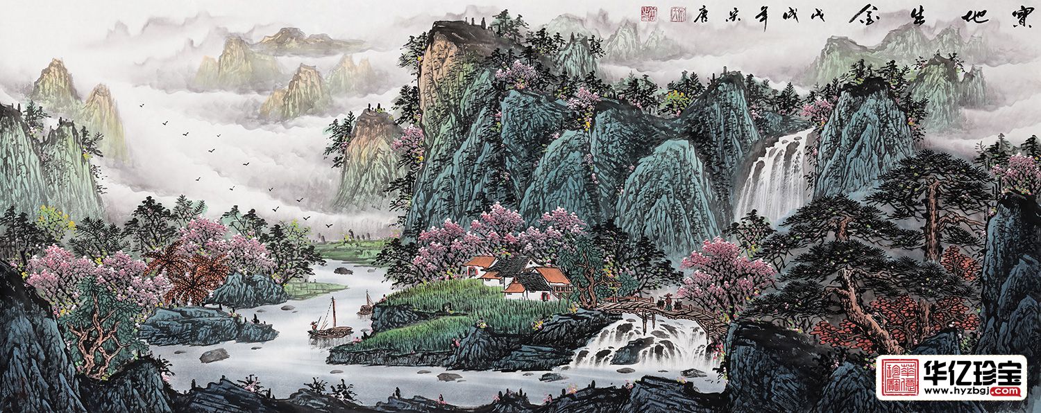 宋唐ZUI新创作六尺横幅田园山水画作品《宝地生金》