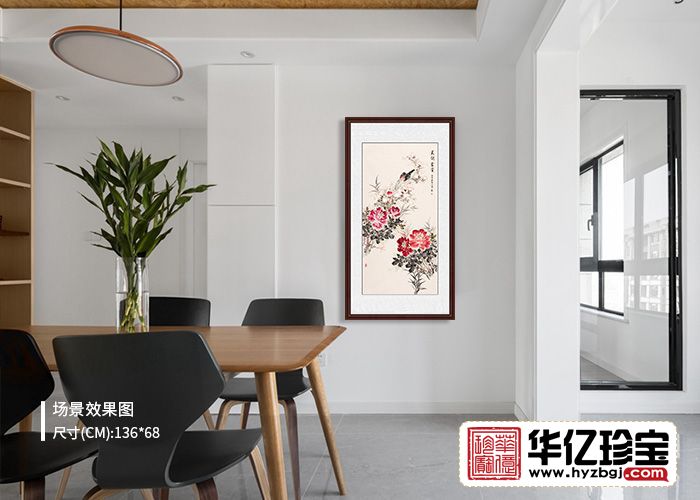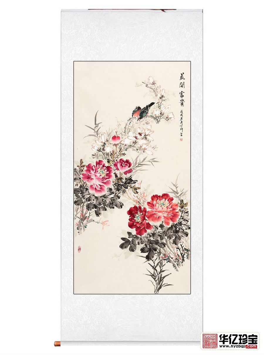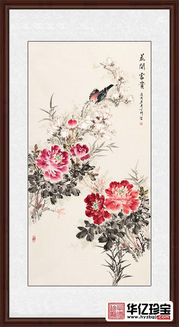 丁珂老师四尺竖幅花鸟画作品《花开富贵》