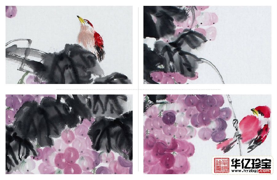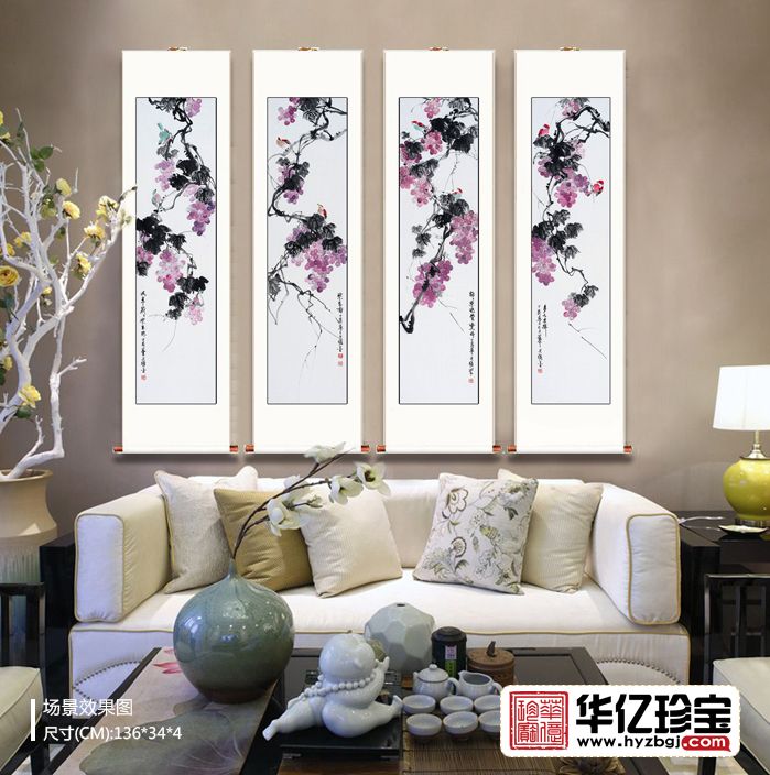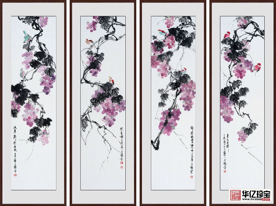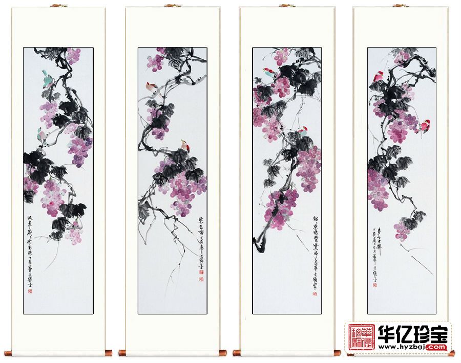 风水葡萄图 王文强新品佳作葡萄四条屏《多子吉祥》