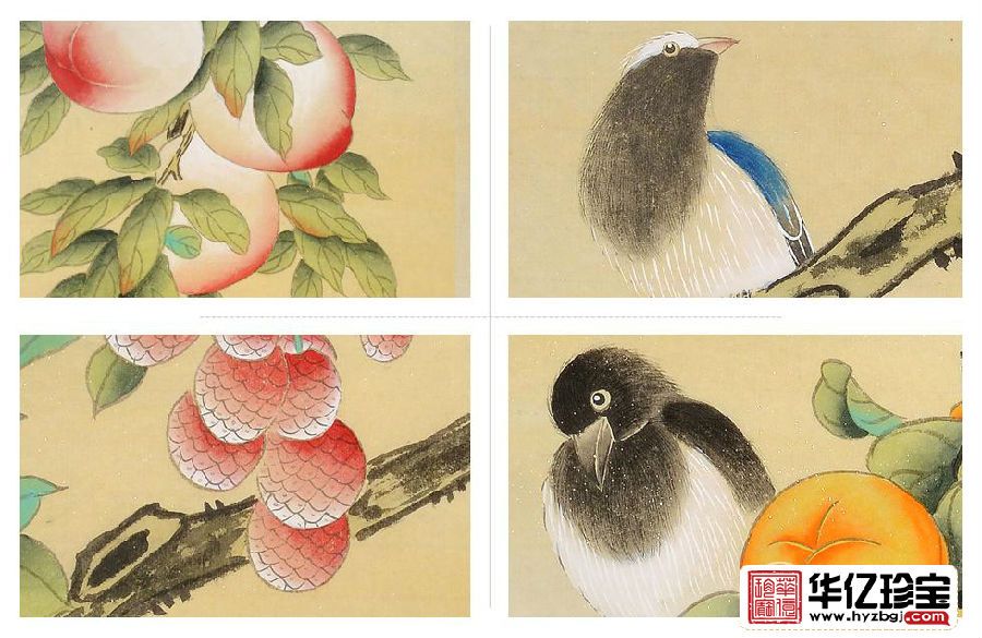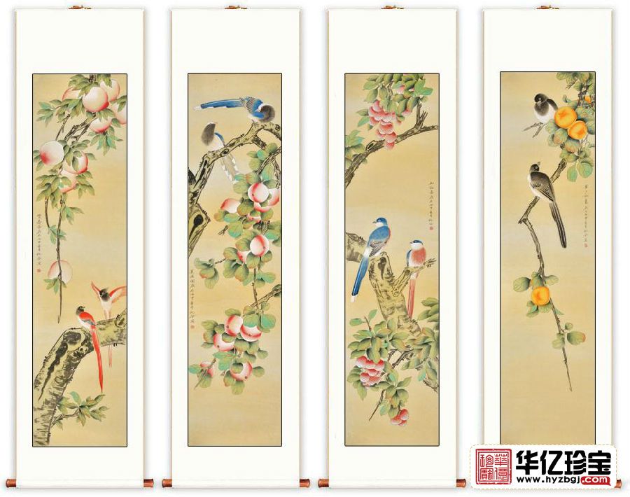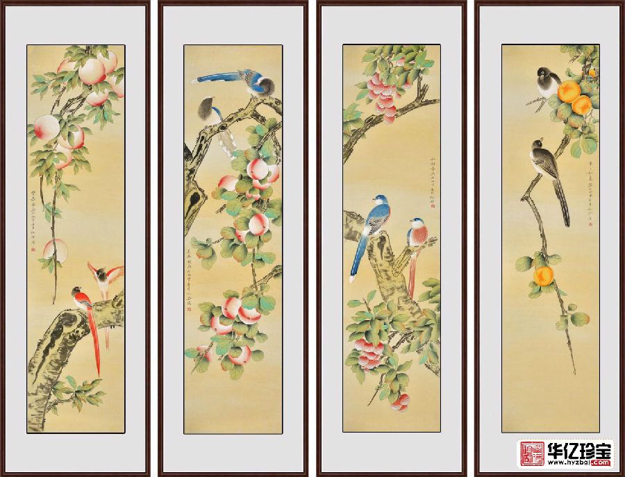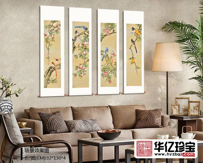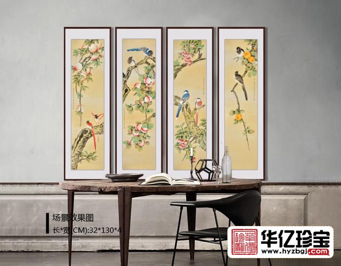 家居装饰画 仇谷工笔花鸟画作品《吉祥如意四条屏》