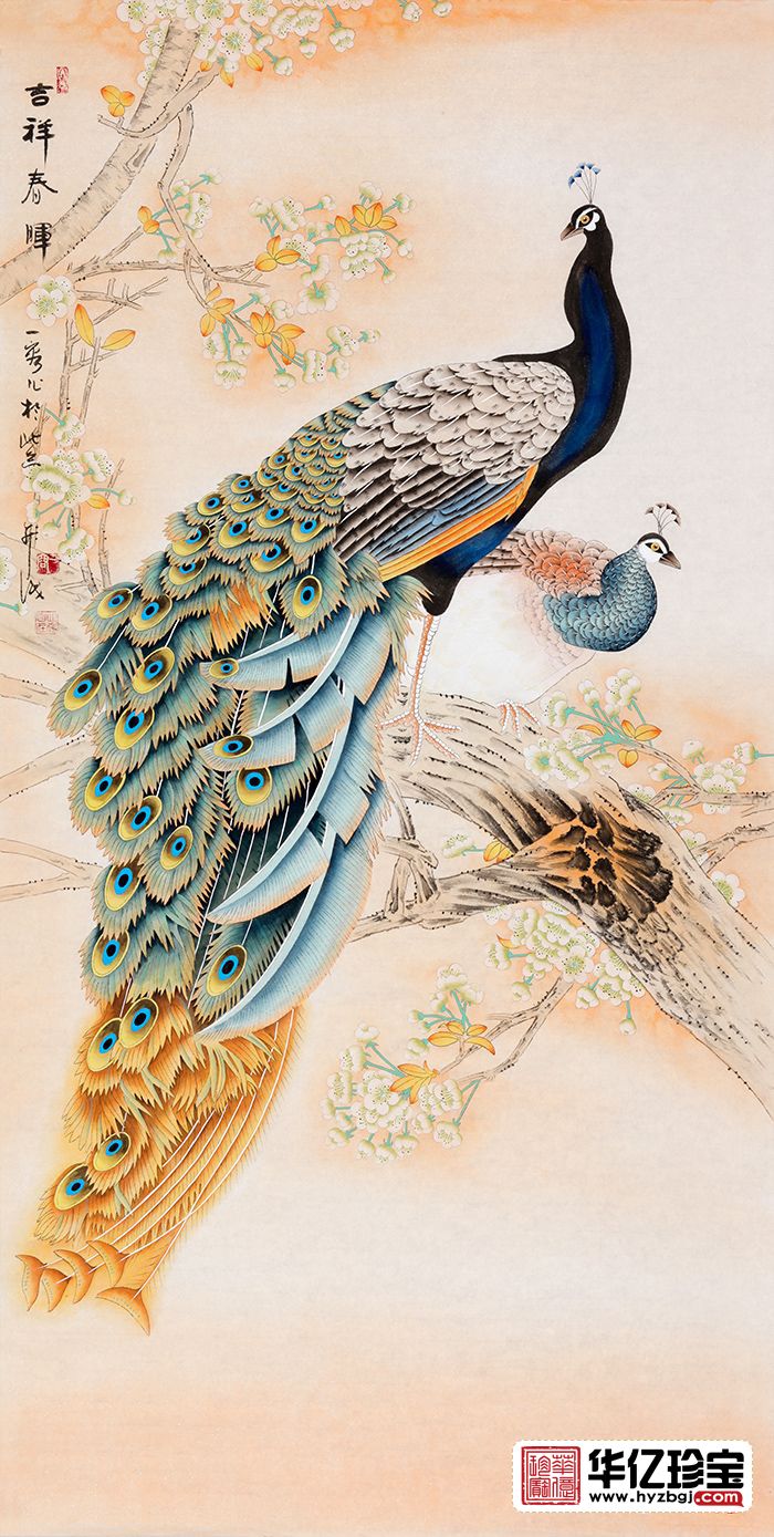 玄关走廊挂画 王一容新品孔雀图《吉祥春晖》