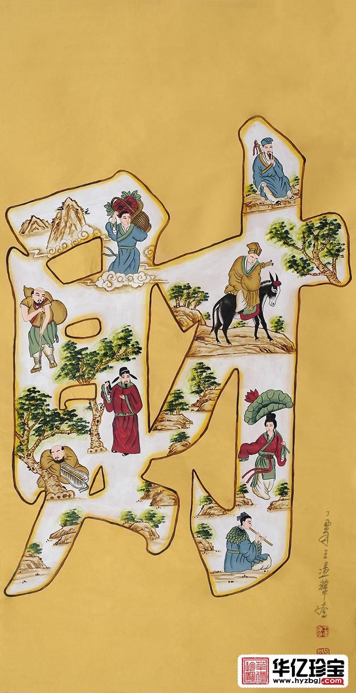 财源广进,王建辉四尺竖幅人物画《财》,“福禄寿喜财”分别代表了老百姓对幸福、升官、长寿、喜庆、发财五个方面的人生希望,代表了我们内心的寄托。福、禄、寿、喜、财,是我国民间喜闻乐见的永恒的吉祥题材,也因此被众多的家庭悬挂。