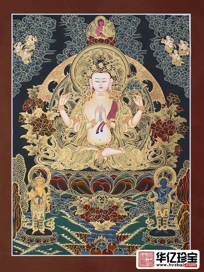 加入数量: 总计金额:精品黑金唐卡《四臂观音》音矿物颜料纯手绘 ,喇嘛亲工,有签名落款画芯尺寸69*52cm,四臂观音是雪域西藏的守护神,藏人由老至幼家家户户,皆吟诵其六字大明咒:“嗡嘛呢叭咪吽”。四臂观音舆文殊菩萨、金刚手菩萨,合称三族姓尊.代表大悲、大智、大力,为密乘行者人人必修的法门~仅此一副,请价不高,期待有缘人。