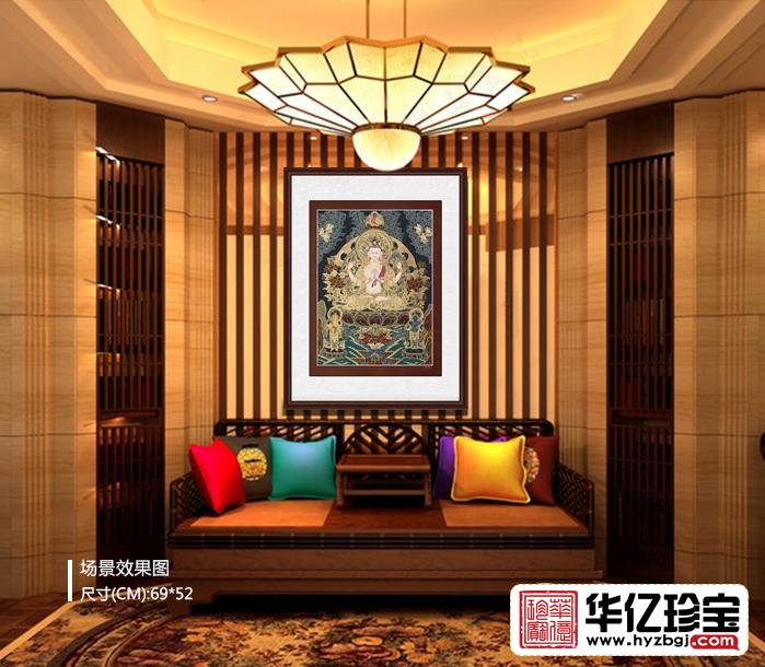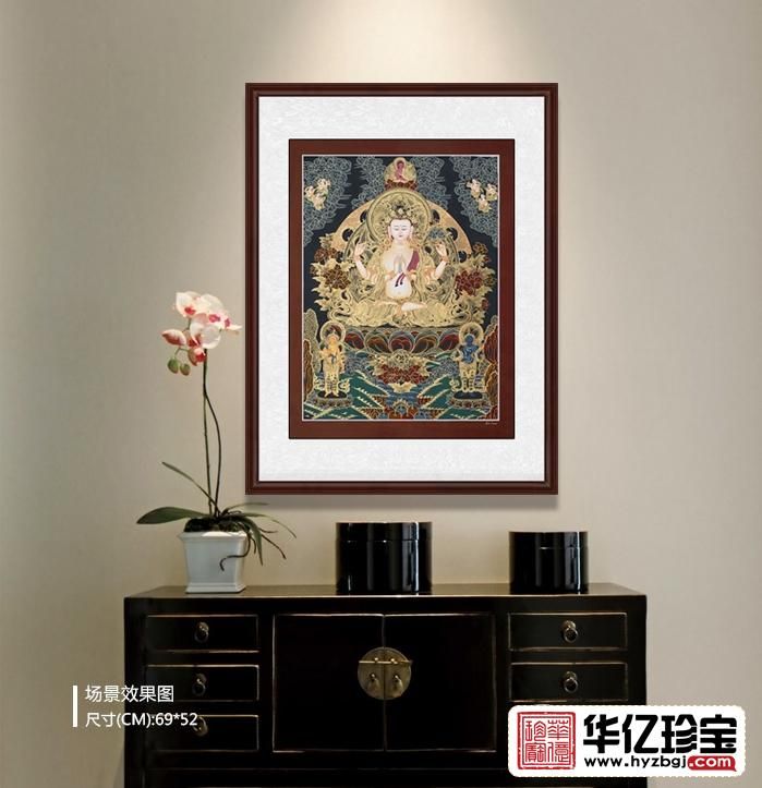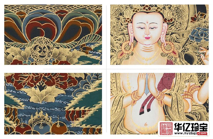 唐卡是藏族文化中一种独具特色的绘画艺术形式。具有鲜明的民族特点、浓郁的宗教色彩和独特的艺术风格, 用明亮的色彩描绘出神圣的佛的世界;颜料传统上是全部采用金、银、珍珠、玛瑙、珊瑚、松石、孔雀石、朱砂等珍贵的矿物宝石和藏红花、大黄、蓝靛等植物为颜料,以示其神圣.这些天然原料保证了所绘制的唐卡色泽鲜艳,璀璨夺目,虽经几百年的岁月,仍是色泽艳丽明亮.因此被誉为中G民族绘画艺术的珍品,被称为藏族的”百科全书”也是中华民族民间艺术中弥足珍贵的非物质文化遗产。
