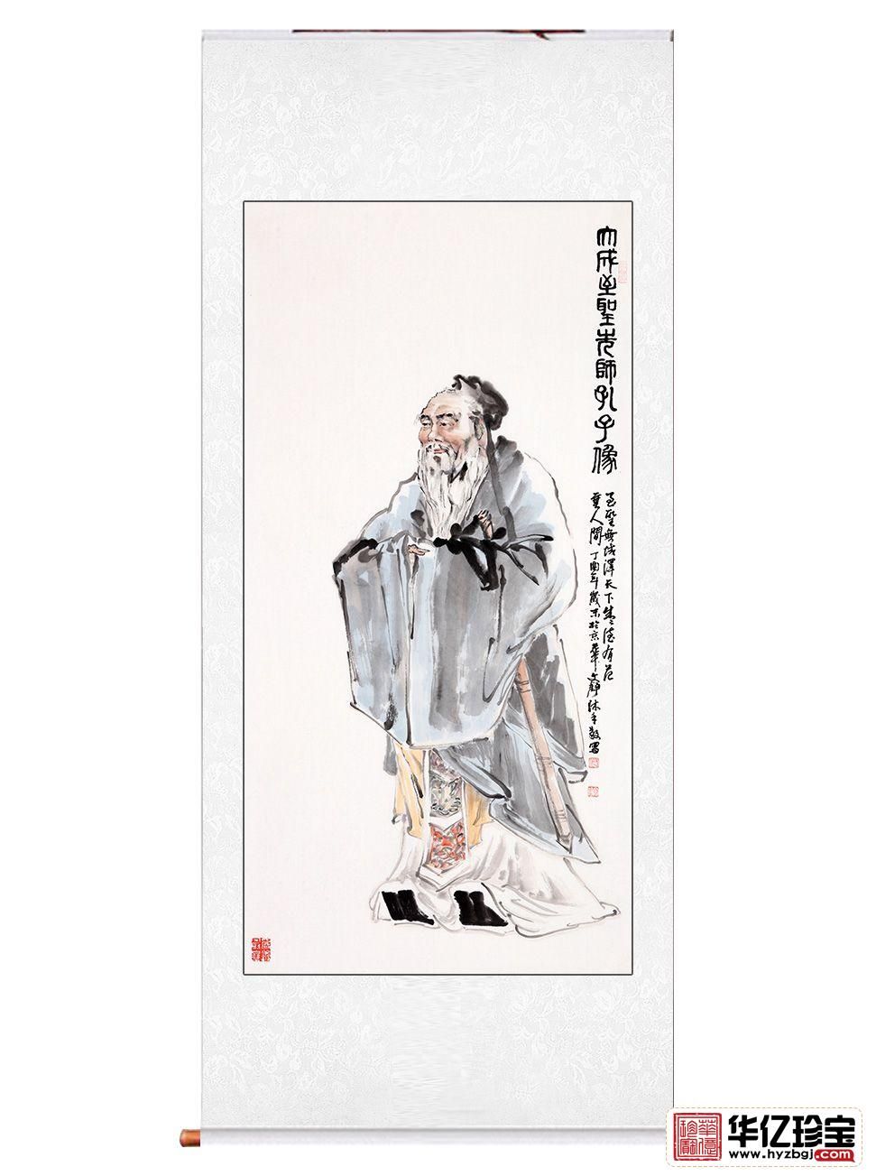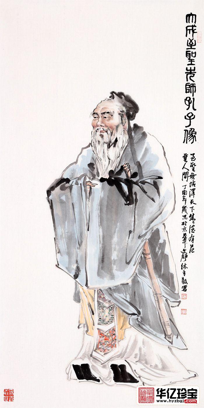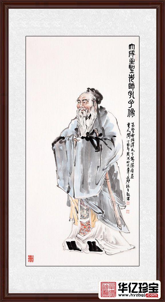 何文铮四尺竖副人物画孔子《大成至圣先师孔子像》