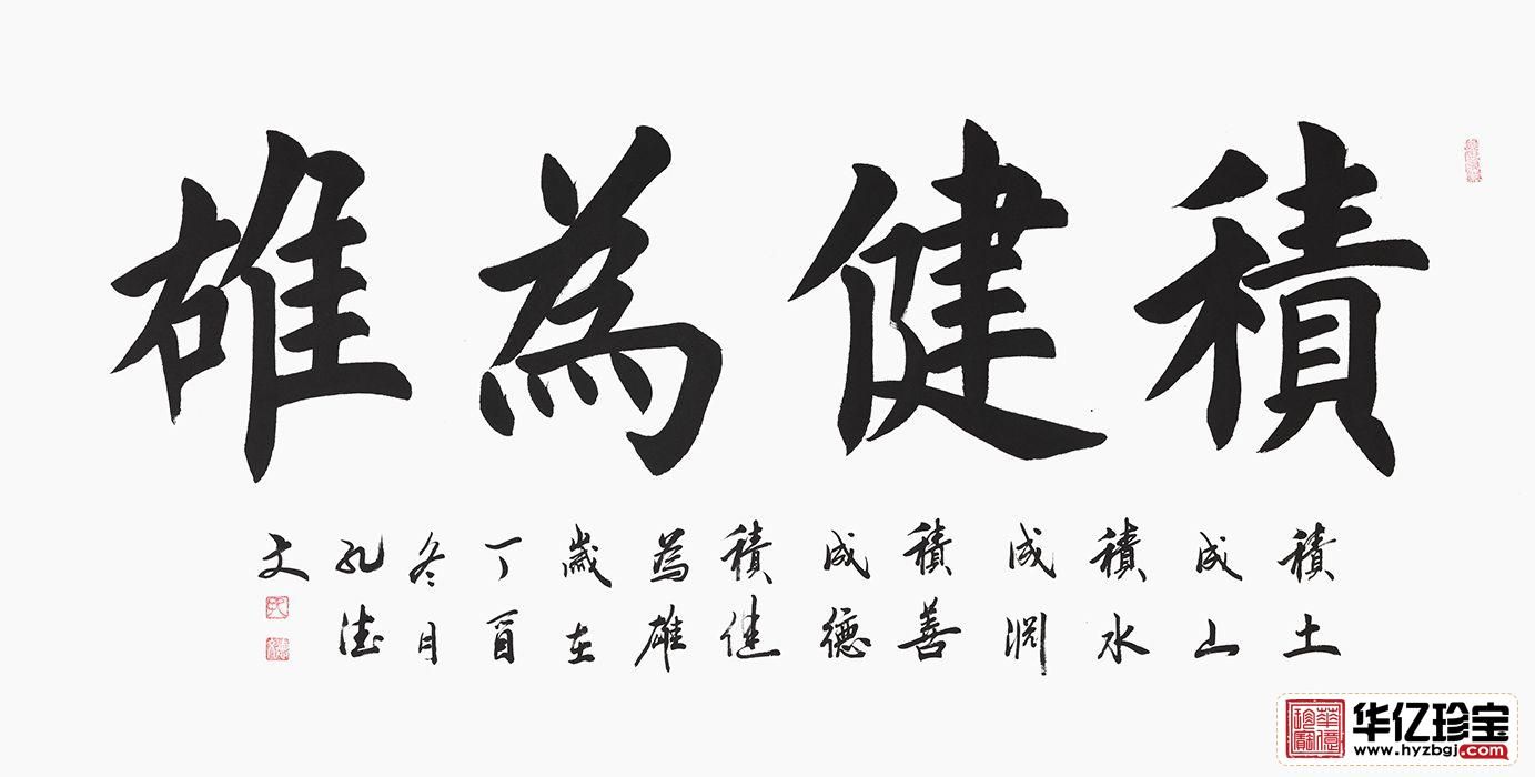 时下,“积健为雄”是书房、客厅、办公室、会议室悬挂的重要内容,是成功人士的励志警言,是朋友公司开业时绝佳的书法礼品,更是企业不断发展,勇于开拓,进取精神的象征。而孔德文老师这幅《积健为雄》笔法苍劲,气势浑厚,不仅可以增强气场,更能助您励志开运,是您不容错过的上等佳作。