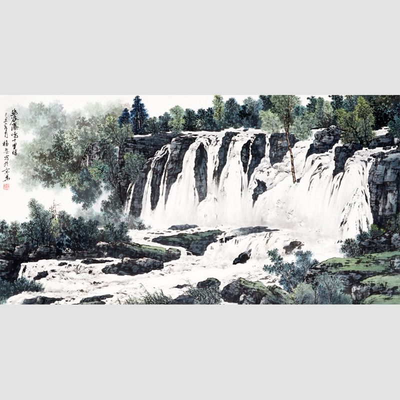 李福安《幽谷瀑鸣十里情》山川瀑布源远流长