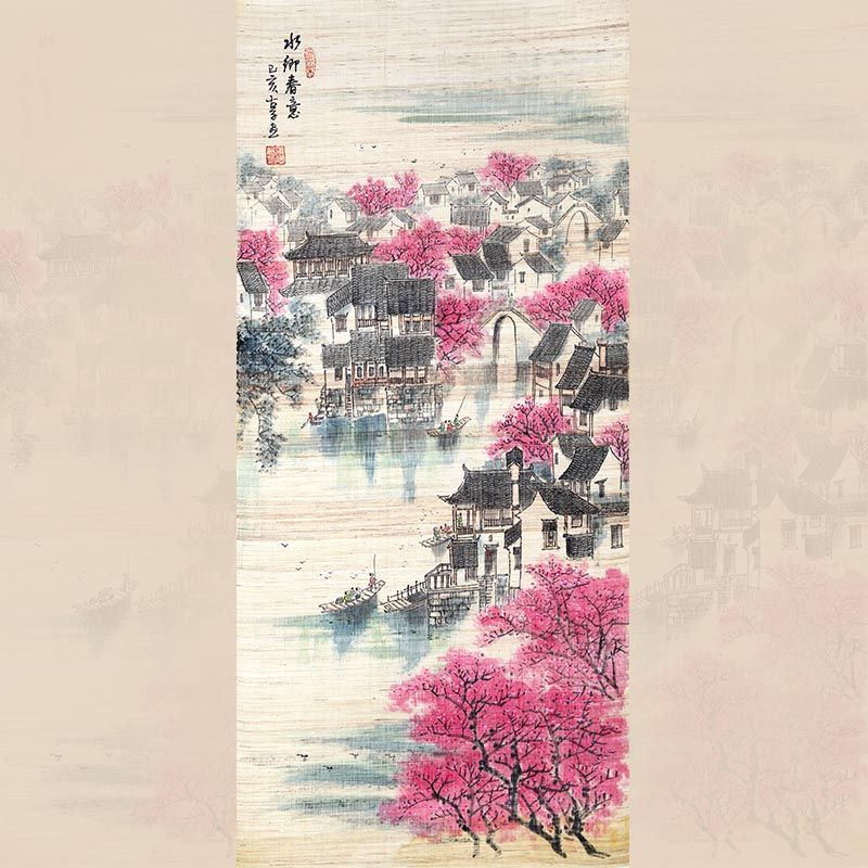 • 叶阿林《水乡春意》8平尺亚麻布作品