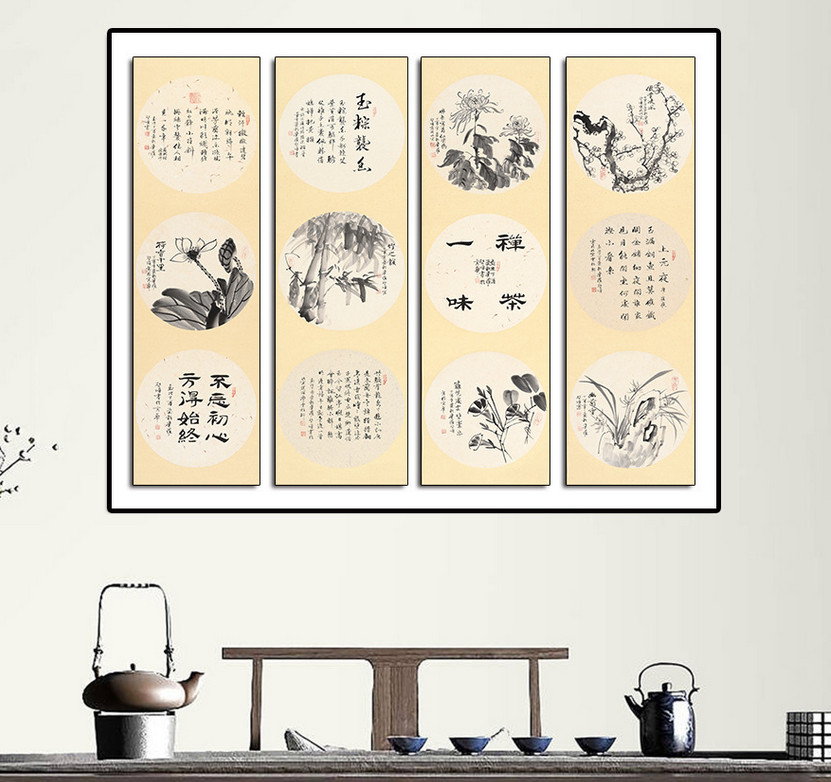 皇家书画,团镜条屏,爱新觉罗启顺原创佳作
