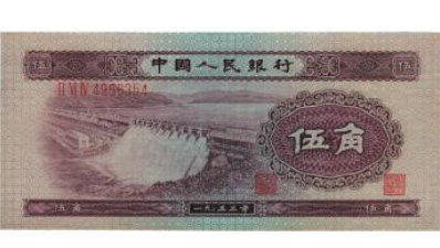 第二版人民币 53年版 伍角水电站 浅版五星水印
