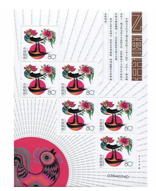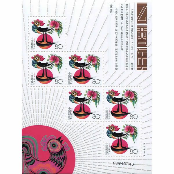 2005年邮票 2005-1 乙酉年 三轮生肖邮票鸡小版张